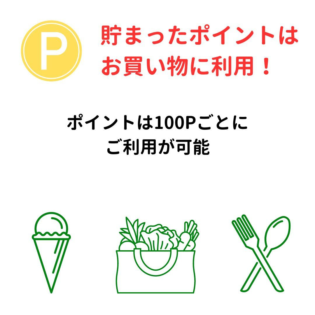100ポイント単位でご使用いただけますのでお会計時、レジスタッフに使用したいポイント数をお伝えください。