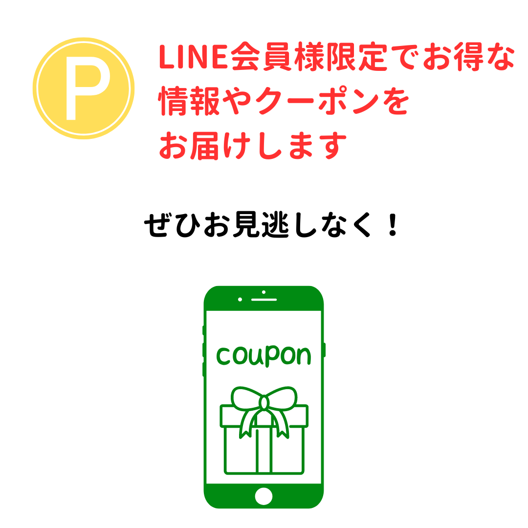 LINE会員のみ、お得な情報・クーポンを配布します。