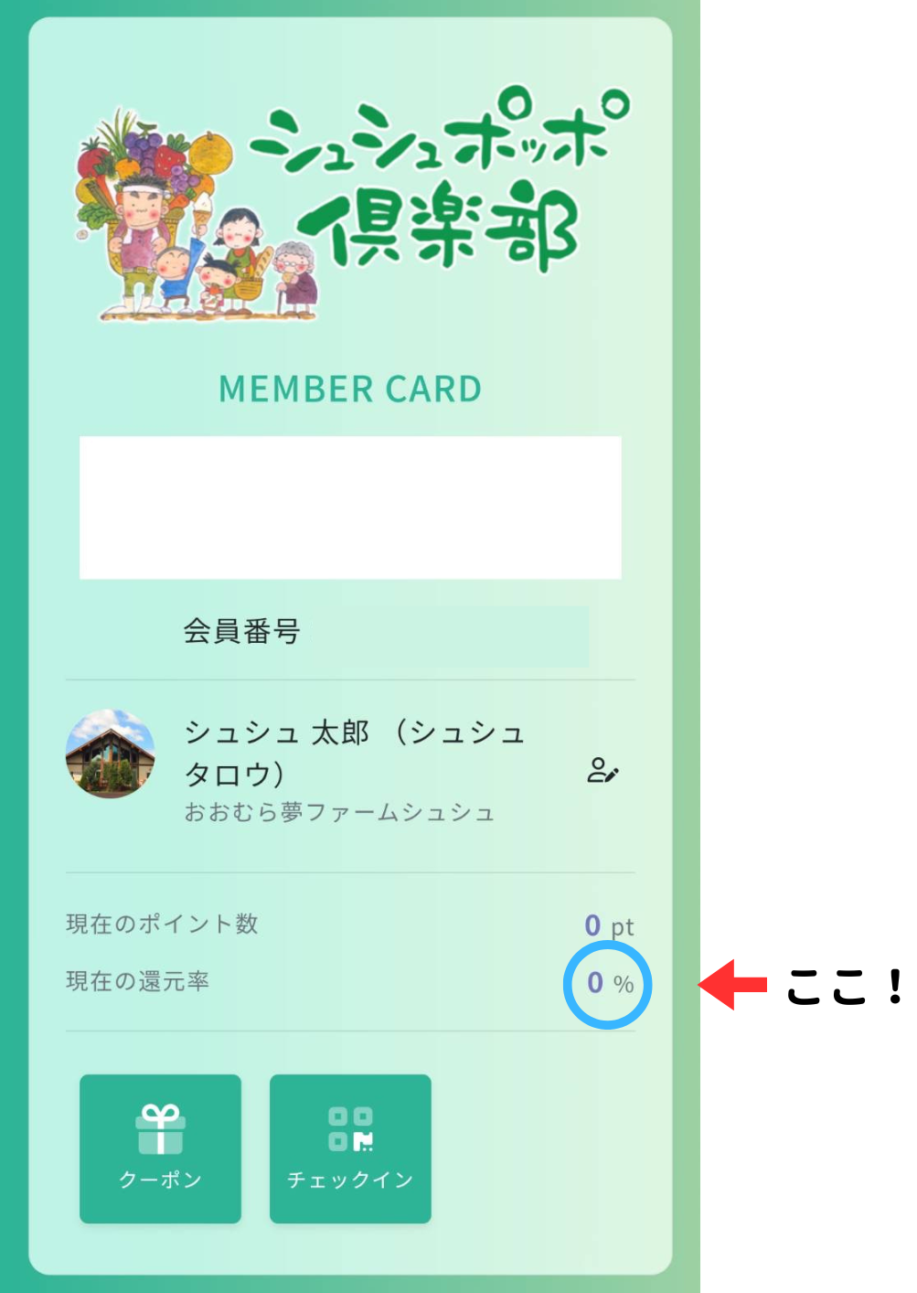 カード会員の登録はおおむら夢ファームシュシュ店頭受付のみとなります。