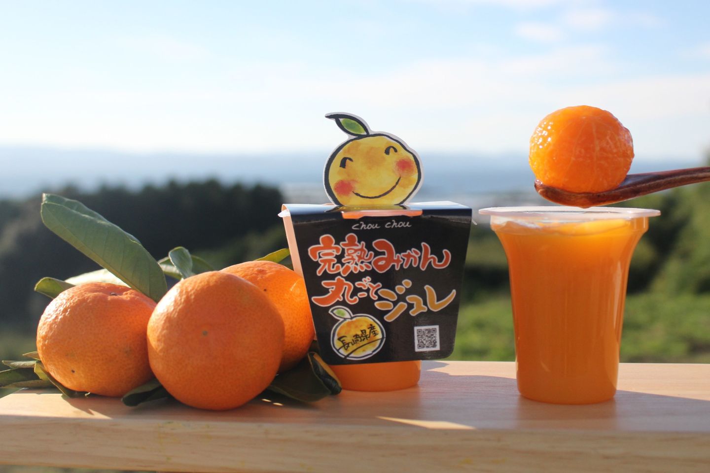 長崎県産の完熟みかんが丸ごと入った果汁たっぷりのジュレです。食べ始めてしばらくすると、なんとみかんが丸ごと1個入って大満足!