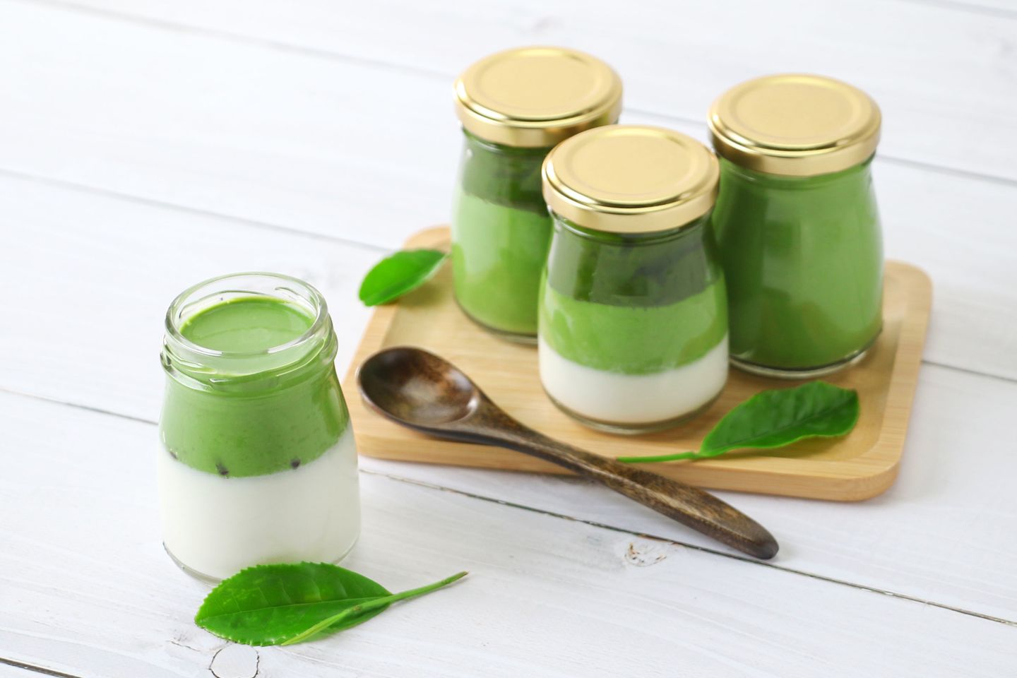 全国茶品評会の蒸し製玉緑茶部門にて農林水産大臣賞の受賞歴がある長崎県の東彼杵町の『そのぎ茶』。その『そのぎ茶』と『おおむら夢ファームシュシュ 洋菓子工房』のコラボレーションで誕生した『めっ茶イケてるそのぎ茶プリン』そのぎ茶をたっぷり使用したくちどけなめらかなプリンです。そのぎ茶のジュレ(濃い緑)そのぎ茶プリン(薄緑)みるくプリン(白)の組み合わせがベストマッチの3層プリンや、そのぎ茶プリンとみるくプリンの2層に大納言入りなど4種類ご準備しております。是非ご賞味下さいませ。