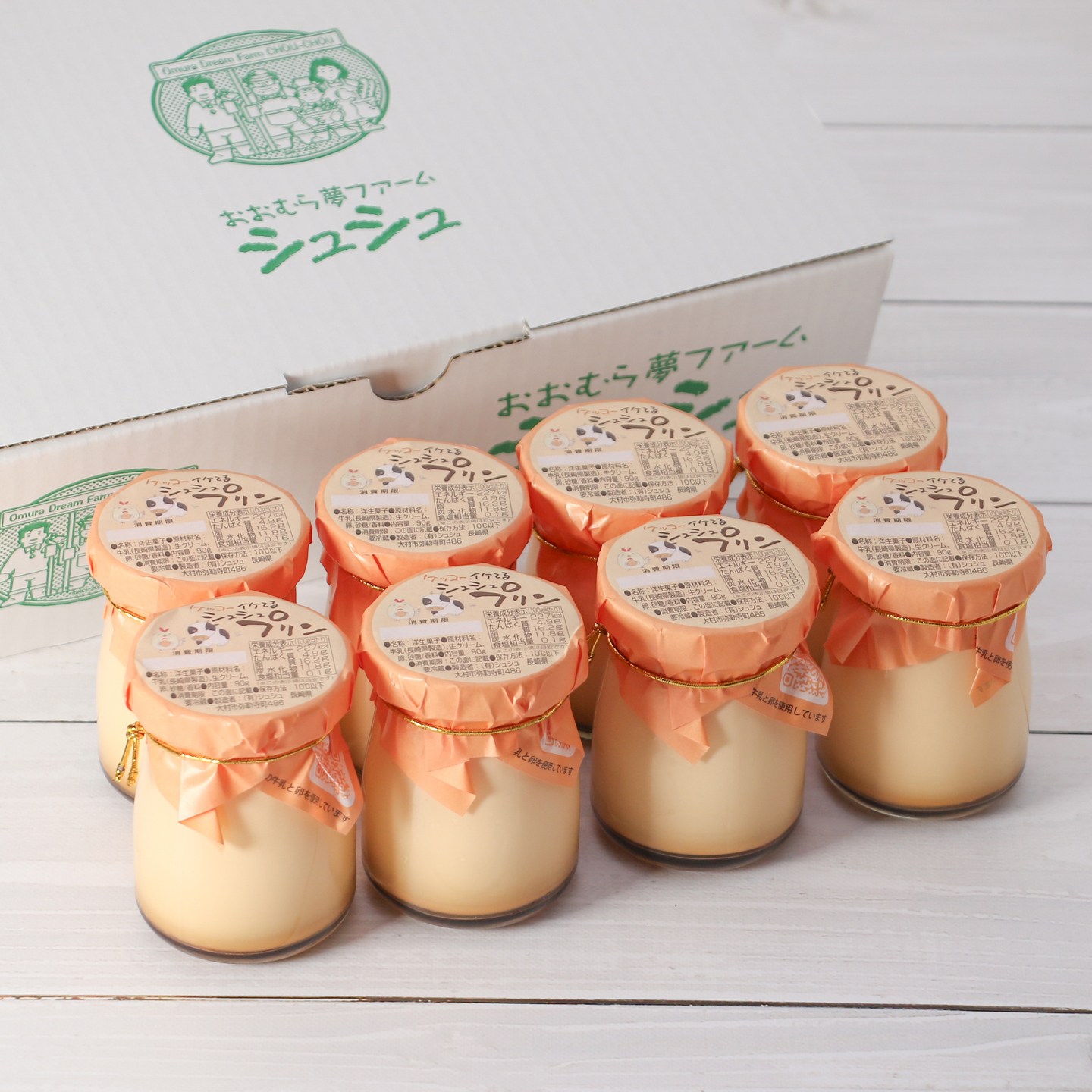 プリン生地は長崎県産の厳選された牛乳・卵を使用ており、保存料を一切使用せず、じっくり蒸し焼きにした独特のなめらかな食感に仕上げております。
